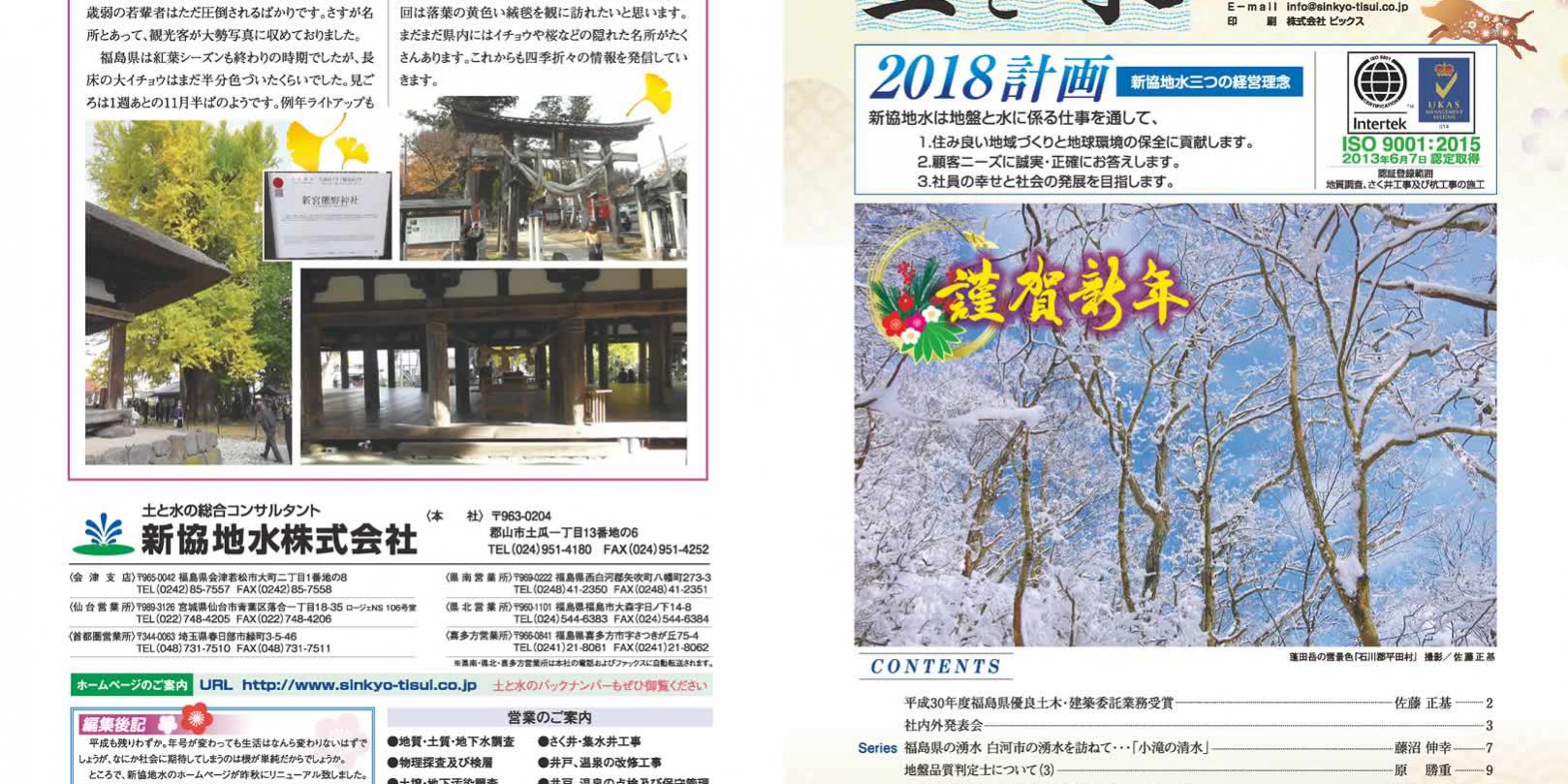 新協地水が業界全体の技術向上や、お客様の様々な情報を提供するメディアとして「土と水」を印刷物で発行して参りましたが、この度、ホームページとしてここに掲載いたします。「土と水」は季刊として発行を予定しております。新協地水の社員だけでなく、 自然保護と、土・水に関心のあるすべての人に開放されています。