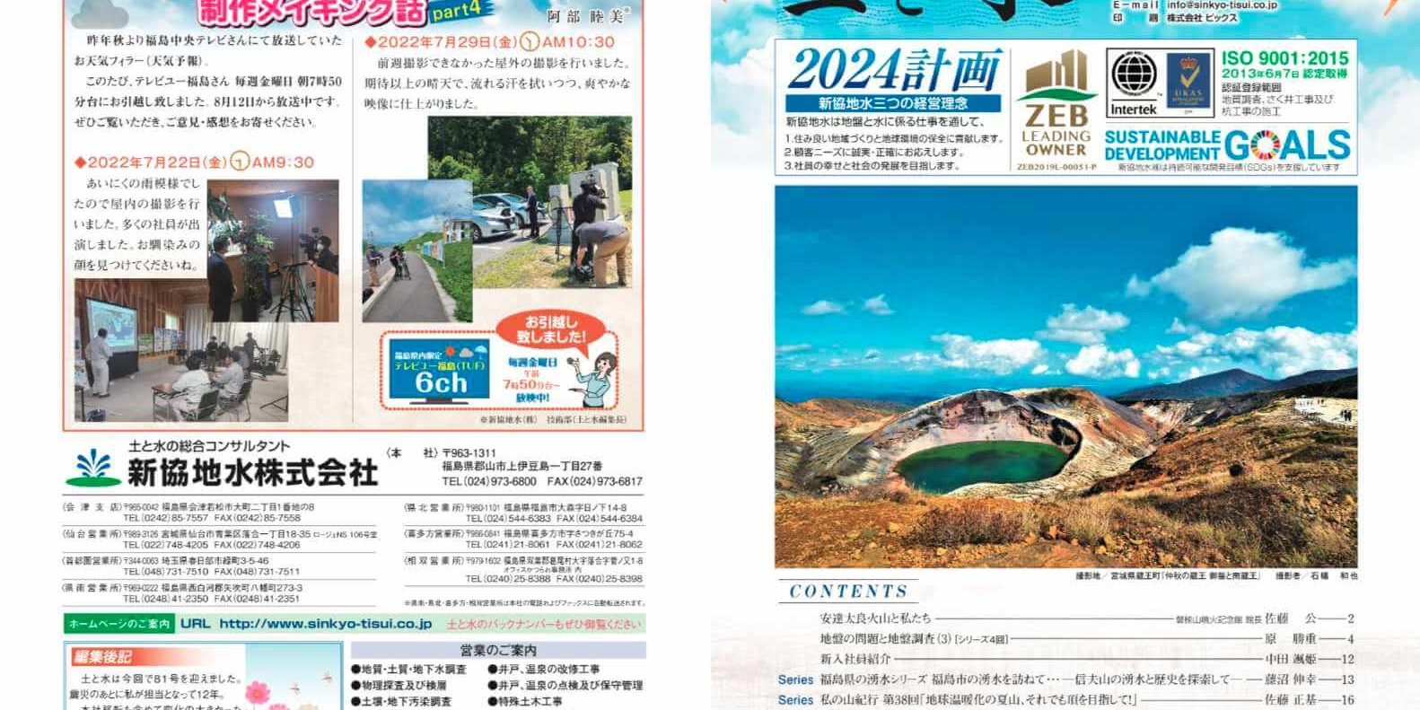 新協地水が業界全体の技術向上や、お客様の様々な情報を提供するメディアとして「土と水」を印刷物で発行して参りましたが、この度、ホームページとしてここに掲載いたします。「土と水」は季刊として発行を予定しております。新協地水の社員だけでなく、 自然保護と、土・水に関心のあるすべての人に開放されています。