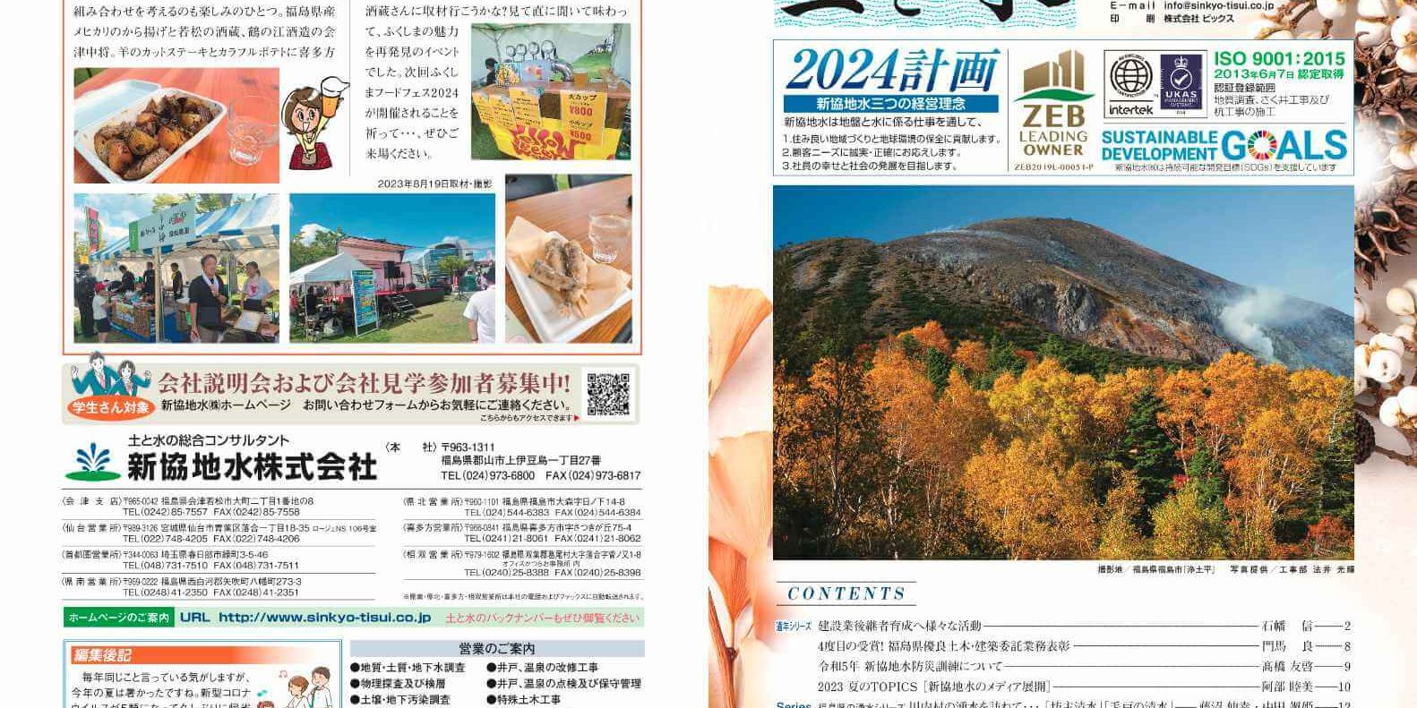 新協地水が業界全体の技術向上や、お客様の様々な情報を提供するメディアとして「土と水」を印刷物で発行して参りましたが、この度、ホームページとしてここに掲載いたします。「土と水」は季刊として発行を予定しております。新協地水の社員だけでなく、 自然保護と、土・水に関心のあるすべての人に開放されています。