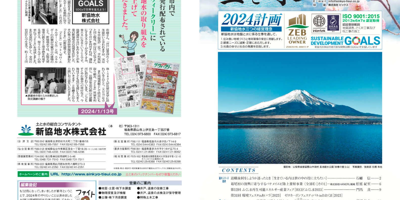 新協地水が業界全体の技術向上や、お客様の様々な情報を提供するメディアとして「土と水」を印刷物で発行して参りましたが、この度、ホームページとしてここに掲載いたします。「土と水」は季刊として発行を予定しております。新協地水の社員だけでなく、 自然保護と、土・水に関心のあるすべての人に開放されています。