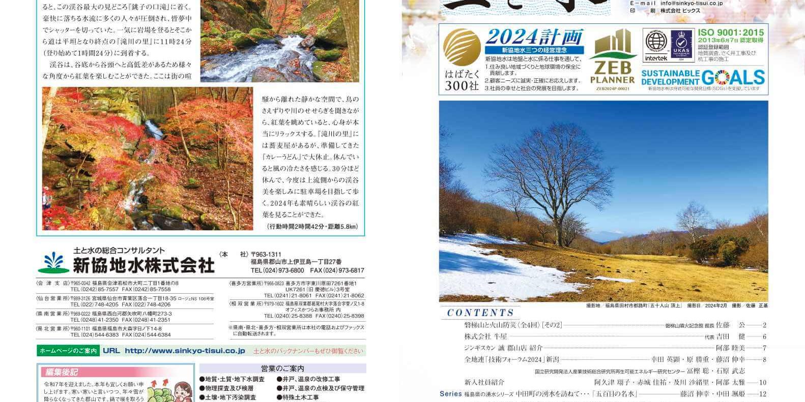新協地水が業界全体の技術向上や、お客様の様々な情報を提供するメディアとして「土と水」を印刷物で発行して参りましたが、この度、ホームページとしてここに掲載いたします。「土と水」は季刊として発行を予定しております。新協地水の社員だけでなく、 自然保護と、土・水に関心のあるすべての人に開放されています。