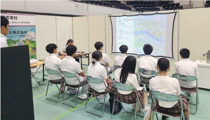 23の参加企業・団体のうちの1社として、地元で働くイメージや社会課題に取り組む内容を披露するために参加してまいりました。郡山市内の高校(3校)の1・2年生を対象とし、弊社の仕事内容や魅力を伝える良い機会となりました。