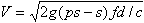 河川流によって河床面で土粒子を押し流す限界流速Vは、の形で表される。ここに、g:重力の加速度(980cm/s2)、ρs:土粒子の比重(=2.65),F:摩擦係数(=1と仮定)、c:土粒子の形状係数(=1と仮定)、d=土粒子の直径(cm)とすると、V=56.9