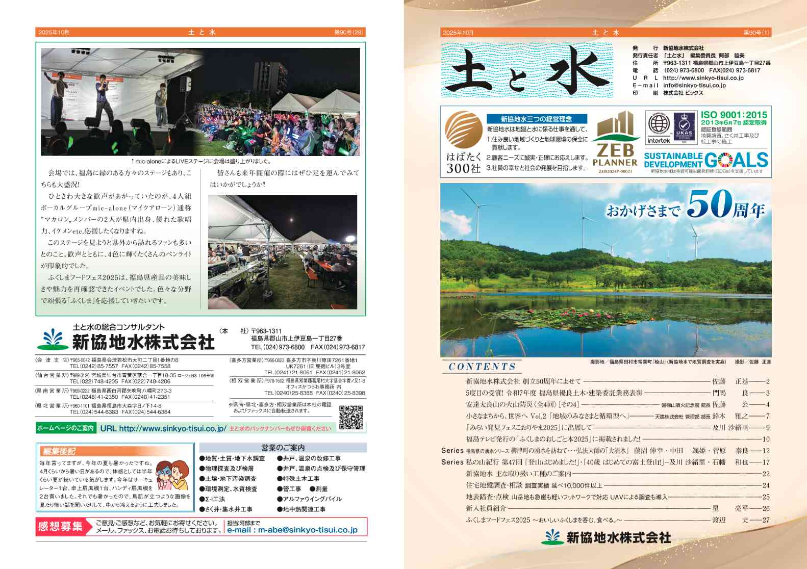 「土と水」第90号 2025年10月号を公開いたしました。 新協地水が業界全体の技術向上や、お客様の様々な情報を提供するメディアとして「土と水」を印刷物で発行して参りましたが、この度、ホームページとしてここに掲載いたしま…
