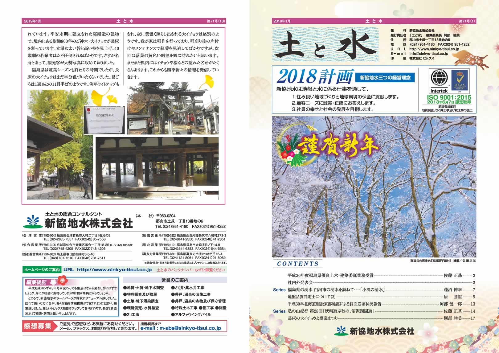 「土と水」第71号 2019年1月号を公開いたしました