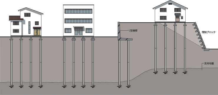 ※Σ-iの適用構造物:(1)地上3階建て以下、(2)高さ13m以下、(3)軒高さ9m以下、(4)延べ床面積5,000m2以下の建築物、および、高さ3.5m以下の擁壁。